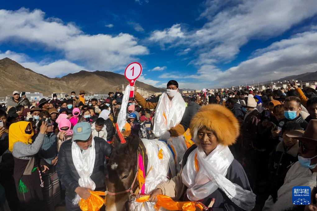 1月24日,奪得第一名的賽馬選手在慶祝。新華社發(fā) 旦增努布 攝