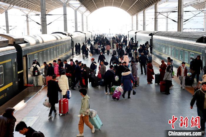 圖為1月26日,青海省西寧火車站站臺,旅客正在進(jìn)行換乘。祁增蓓 攝