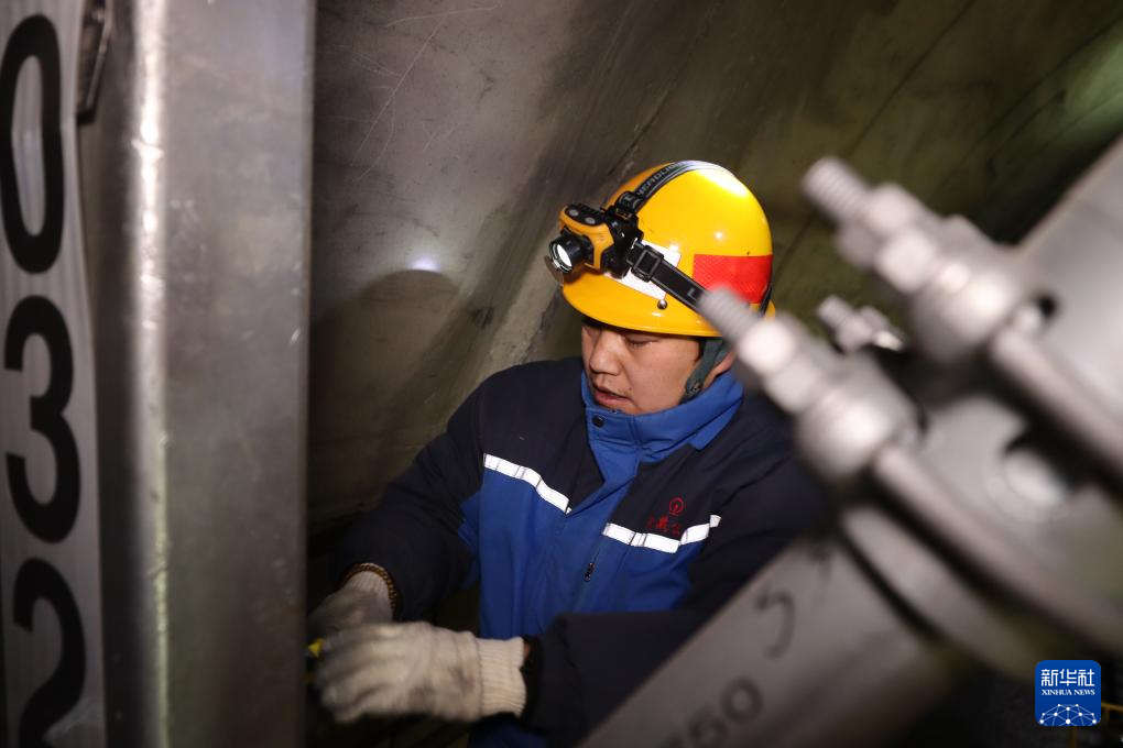 拉薩南接觸網(wǎng)維修隊工長對接觸網(wǎng)設(shè)備進行檢修(1月24日攝)。新華社記者 劉洲鵬 攝