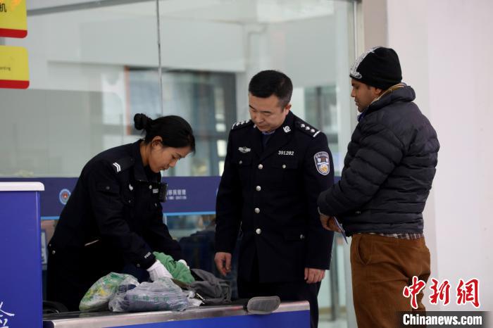 圖為聶拉木邊檢站民警對(duì)出境旅客的行李物品進(jìn)行檢查。鄒興國(guó) 攝