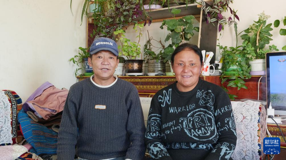 玉珍瑪和普布頓珠夫婦在普蘭縣客運站門衛(wèi)室里合影(1月7日攝)。新華社記者 陳澤鵬 攝