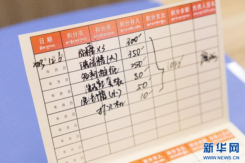圖為昌嘎村“文化銀行”內(nèi)積分可以兌換的商品(2月2日攝)。新華網(wǎng)發(fā) 李騰 攝