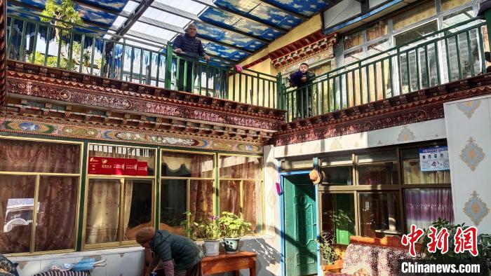 “樓上樓下都有陽光,很暖和。”2月2日,西藏網(wǎng)絡(luò)媒體新春走基層活動(dòng)記者一行來到山南市瓊結(jié)縣昌嘎村,此時(shí)該村四組村民多吉在家里的二樓陽光房?jī)?nèi)準(zhǔn)備過年用的經(jīng)幡,他的老伴則在一樓庭院內(nèi)整理衣物,午后的陽光透過玻璃窗落在沙發(fā)上,坐在這里感覺不到冬的寒意,郁郁蔥蔥的綠植讓這所溫馨的居所生機(jī)勃勃。