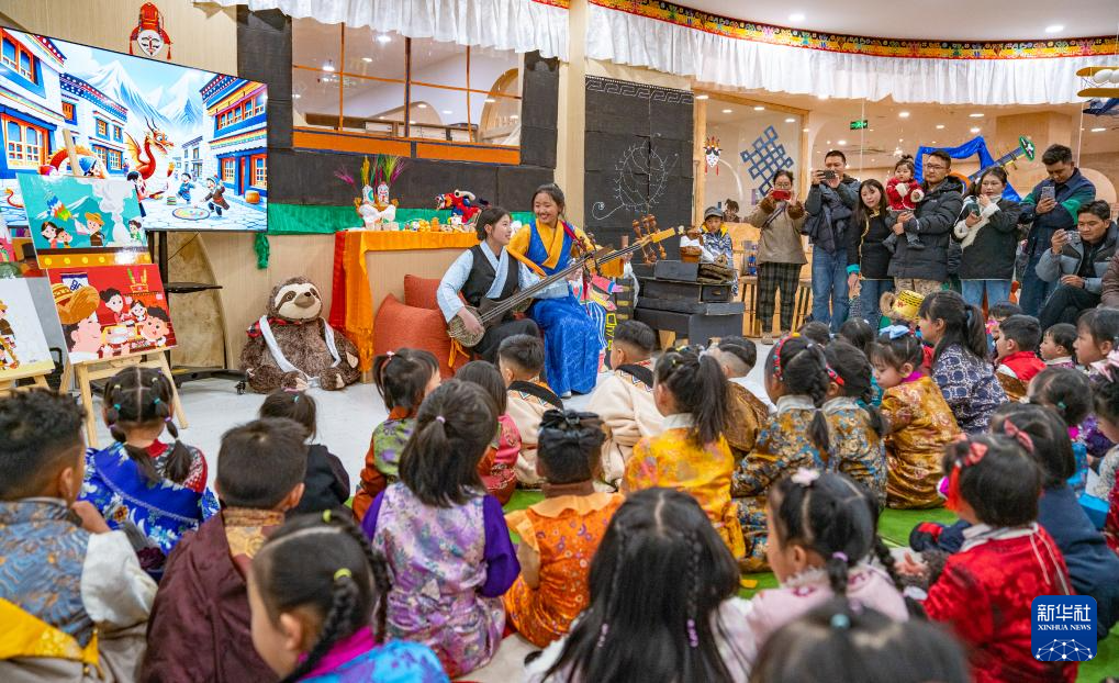 2月3日,手偶表演演員在拉薩的兒童藏裝派對上和孩子們互動。新華社記者 丁增尼達(dá) 攝