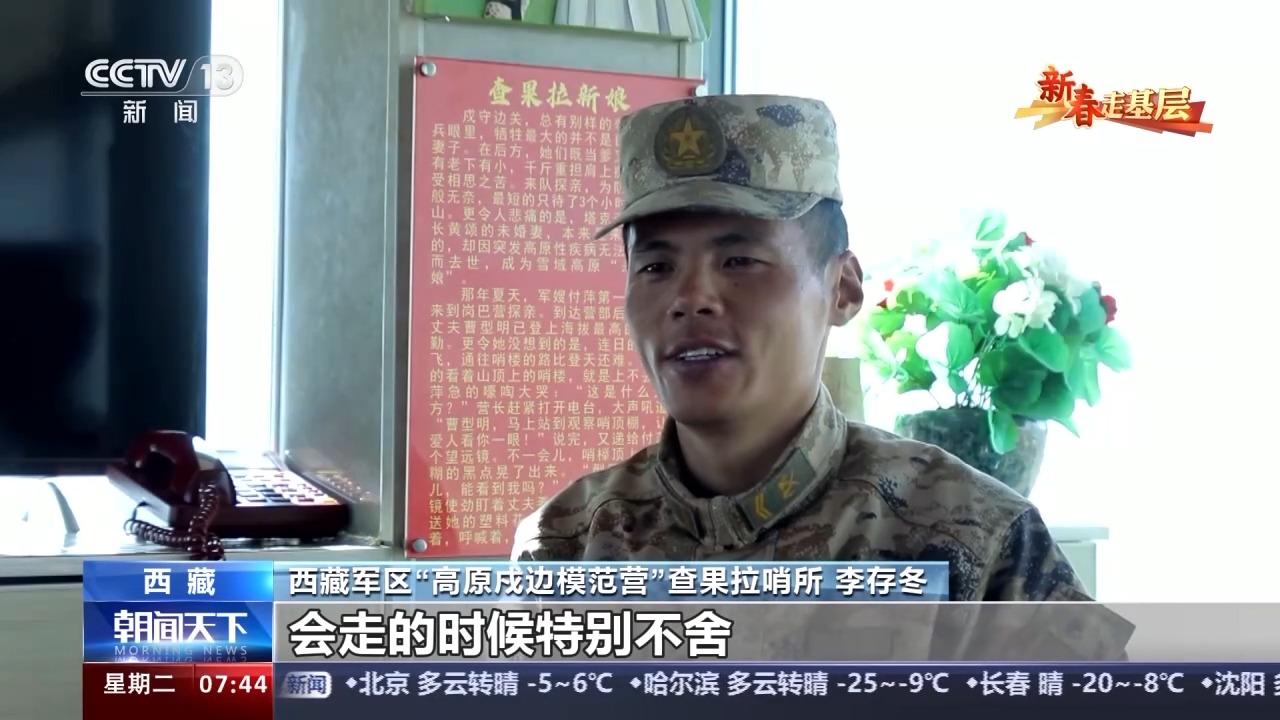 西藏軍區(qū)“高原戍邊模范營”查果拉哨所 李存冬:因為有國才有家,只要國守好了,才能有家,才能更好激勵我們戍守邊關,能夠更好扎根高原。