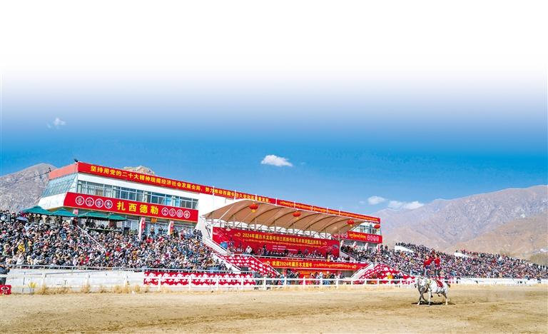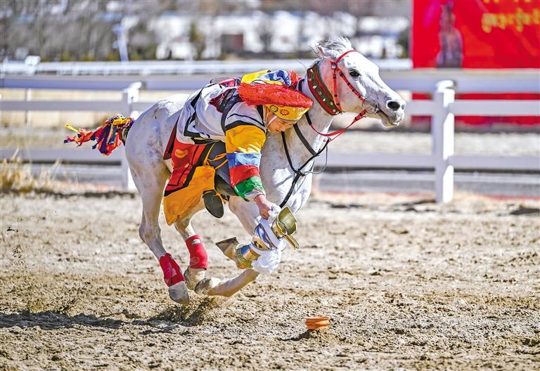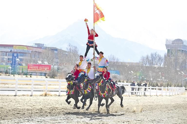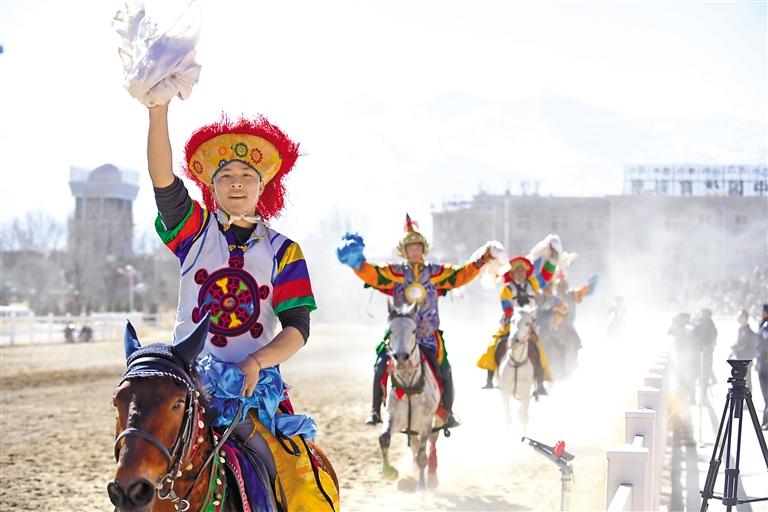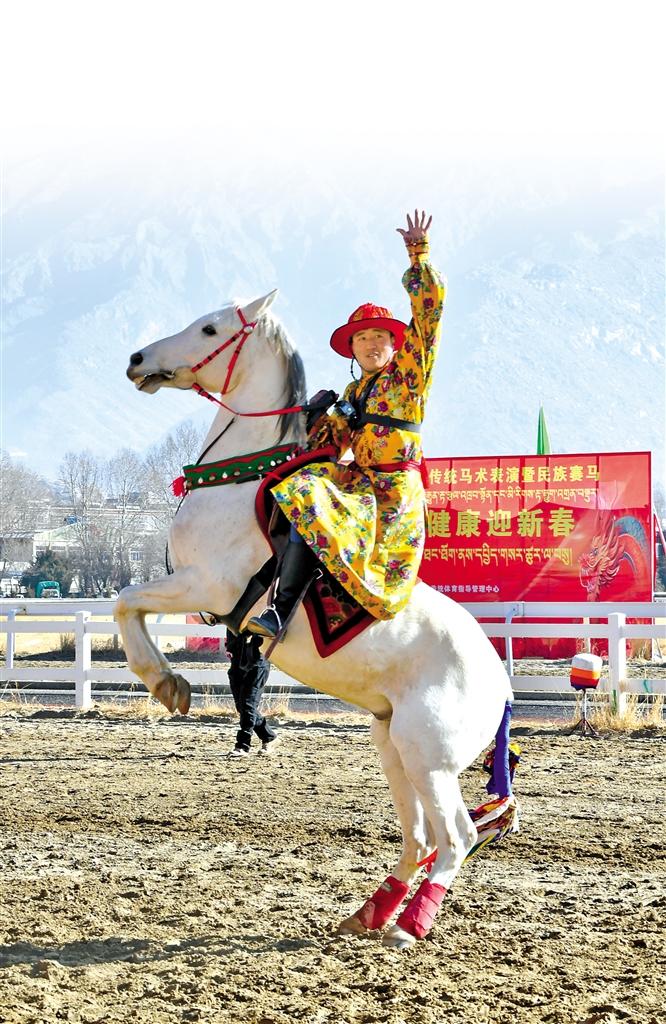 2月12日藏歷新年初三,主題為“體育大拜年,健康迎新春”的民族傳統(tǒng)馬術(shù)表演暨民族賽馬活動(dòng)在拉薩賽馬場舉行。