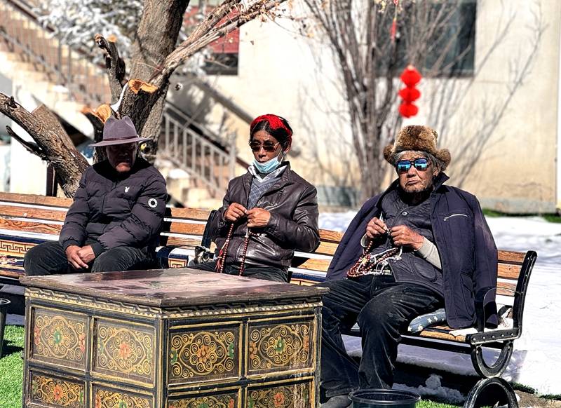 早晨11點(diǎn)多,在海拔4000多米的西藏自治區(qū)日喀則市拉孜縣,厚厚的積雪覆蓋了路面和車輛,室外溫度達(dá)零下十幾度,走進(jìn)特困人員集中供養(yǎng)中心,三三兩兩的老人們坐在院子里的板凳上曬著太陽,開心地聊著天……