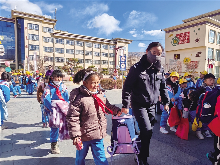站在學(xué)校門口,等待孩子的家長央金感觸頗深,她告訴記者,每次開學(xué)前、開學(xué)時、開學(xué)后,都能看到民警們忙碌的身影。為學(xué)校家長提供幫助,為學(xué)生消除安全隱患,營造了安全、和諧、文明的校園環(huán)境,十分感謝他們。“今天報到啦,我們看到警察叔叔和阿姨就覺得很安心、很開心?!睂嶒炐W(xué)3年級10班學(xué)生白瑪娜薩說。