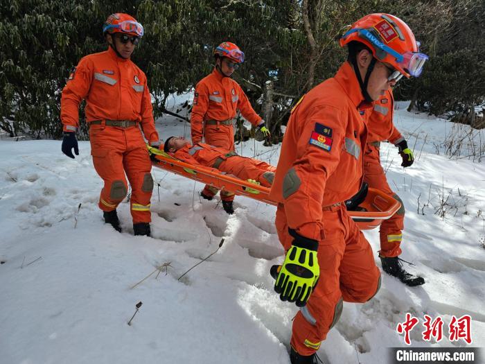 圖為拉練中開(kāi)展冰雪災(zāi)害失聯(lián)人員搜救訓(xùn)練。西藏林芝市森林消防支隊(duì)供圖