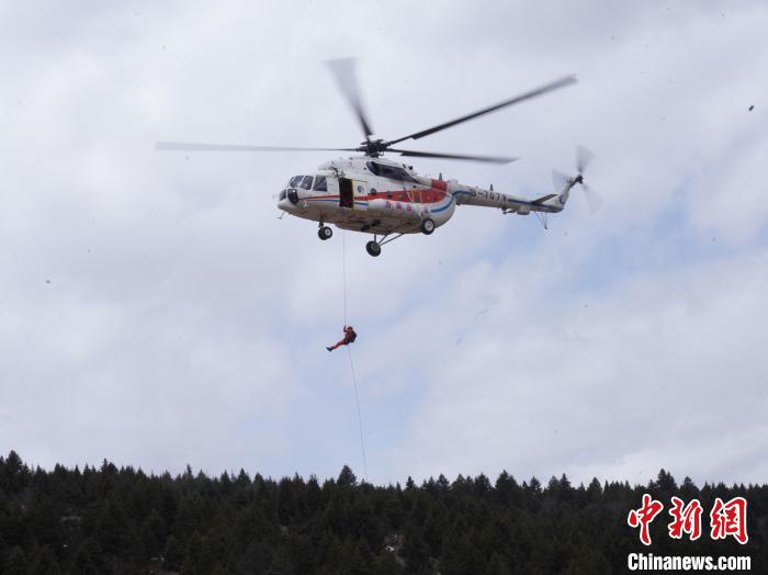 圖為拉練中直升機(jī)滑降訓(xùn)練。西藏林芝市森林消防支隊(duì)供圖
