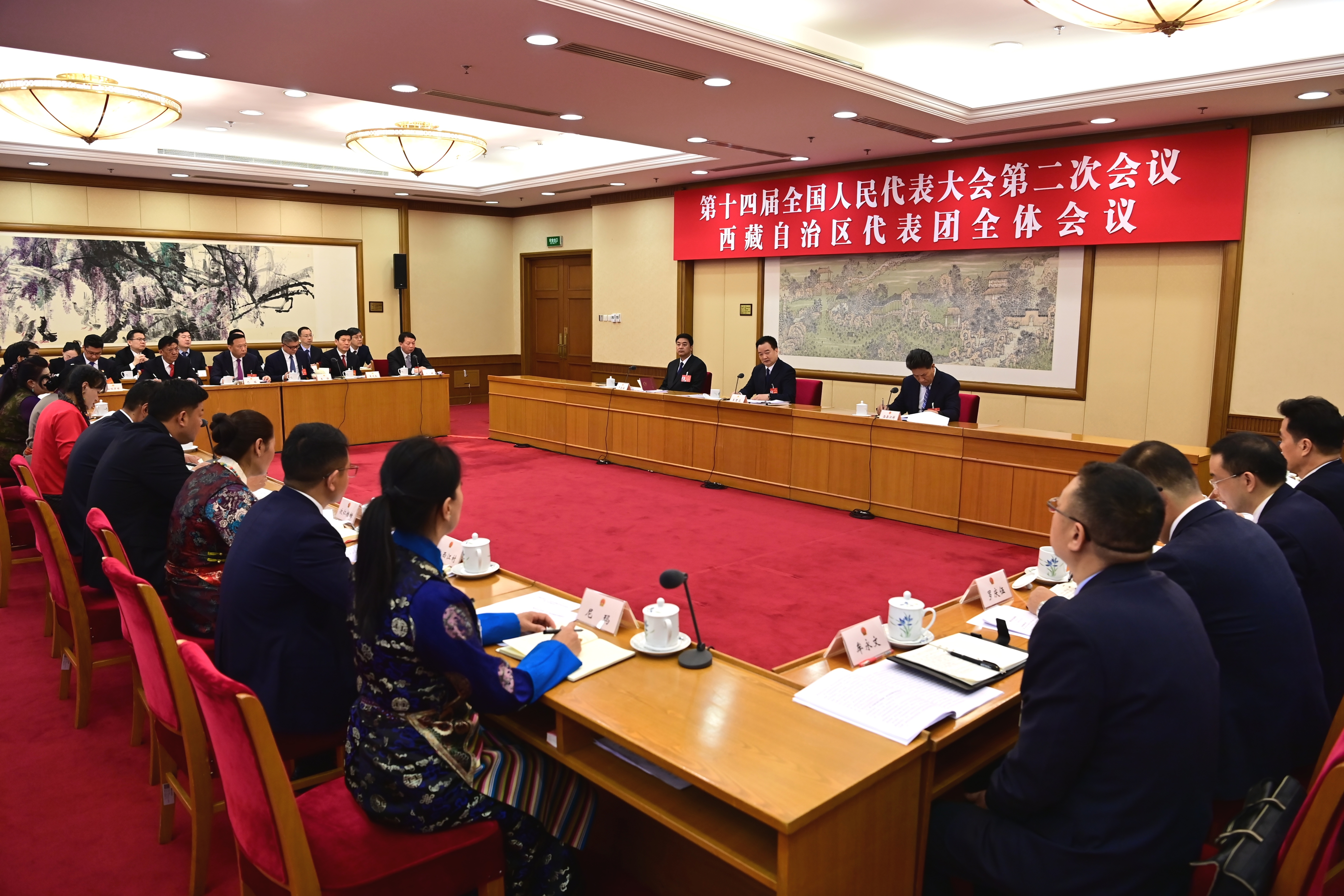 西藏代表團審議政府工作報告,這是會議現(xiàn)場。記者 旦增西旦 攝