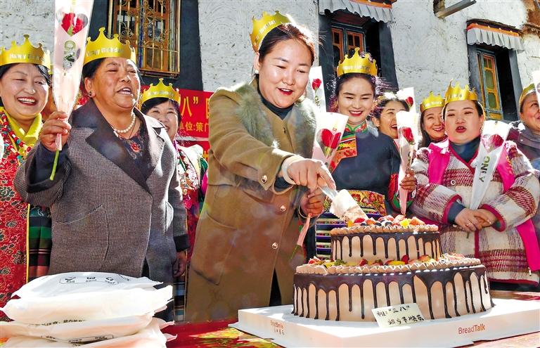 為進一步豐富社區(qū)婦女同胞的精神文化生活,展示社區(qū)巾幗風采,3月8日,拉薩市策門林社區(qū)和藥王山社區(qū)共同舉辦了“巾幗心向黨 奮進新征程‘三八’國際勞動婦女節(jié)”活動,轄區(qū)婦女歡聚一堂,慶祝節(jié)日。圖為轄區(qū)女性共同切蛋糕慶祝節(jié)日。 旦增蘭澤 攝