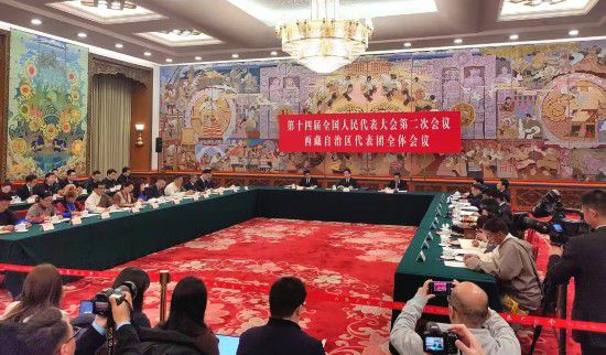 “西藏有大大小小1500多個湖泊,‘措’在藏語中就是湖泊的意思,游客常開玩笑說,這一路上,總是一‘措’再‘措’。”3月6日下午,出席十四屆全國人大二次會議的西藏代表團舉行開放團組會議,全國人大代表、西藏自治區(qū)主席嚴(yán)金海打趣地說。
