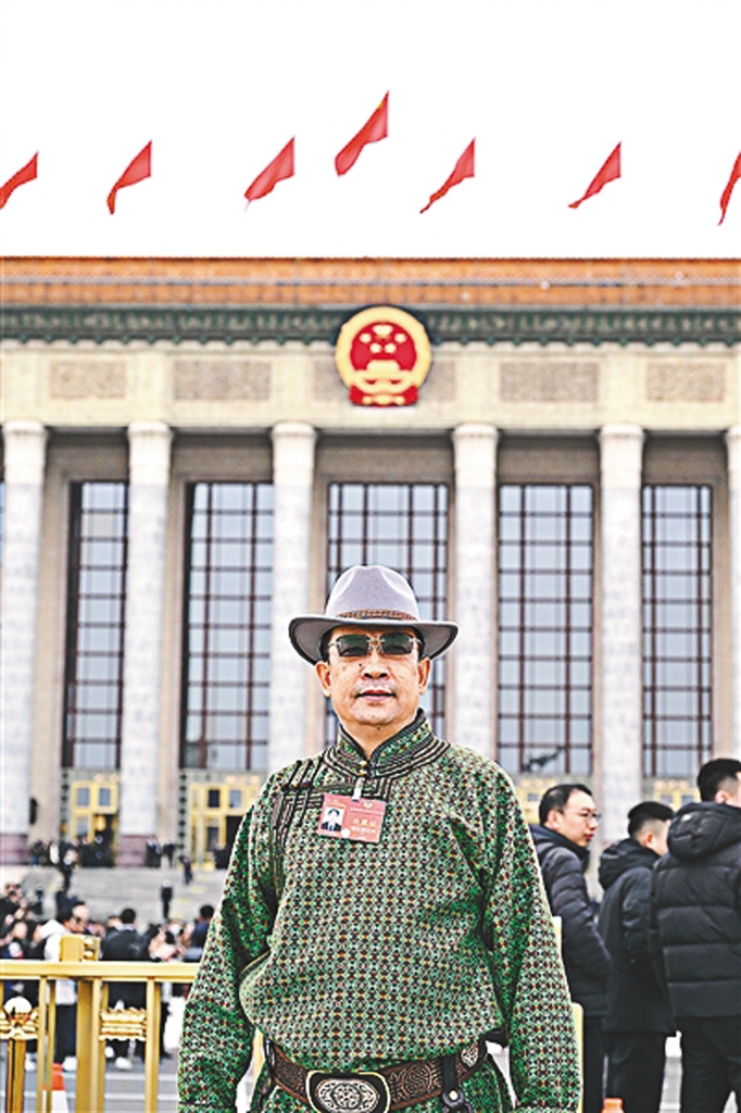 全國政協(xié)委員、內(nèi)蒙古錫林郭勒盟蘇尼特左旗烏蘭牧騎隊長 阿拉騰達來