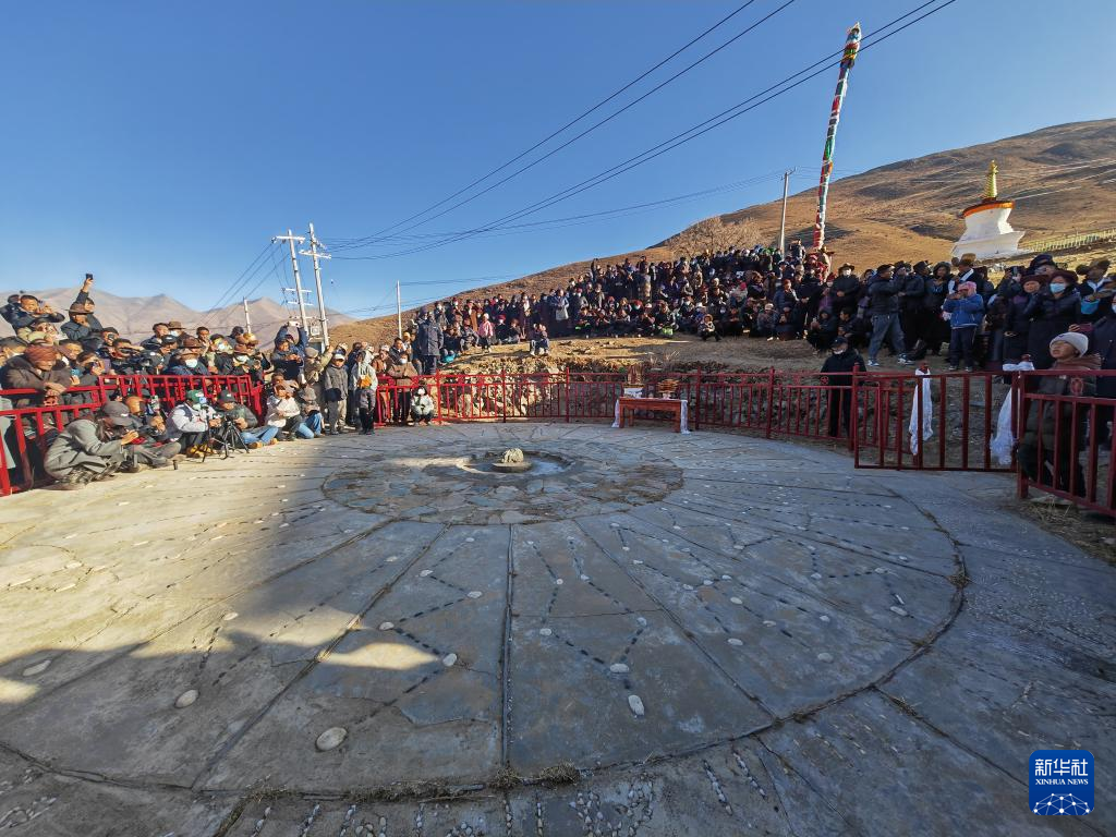 就在4天前,達(dá)布天文觀測(cè)臺(tái)附近圍著身著盛裝的村民。9時(shí)50分,陽(yáng)光穿過(guò)測(cè)孔樓頂?shù)娜展獬隹冢鄙湓?9米外的測(cè)光石上。這一刻,太陽(yáng)、日光出口與測(cè)光石連成一條直線,標(biāo)志著拉薩河以東區(qū)域的春灌時(shí)間到來(lái)。