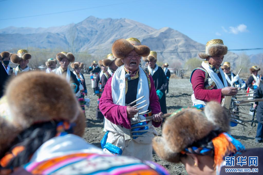 3月16日,克松社區(qū)居民格桑多吉在領(lǐng)唱古老的《春耕之歌》。新華網(wǎng) 旦增努布 攝