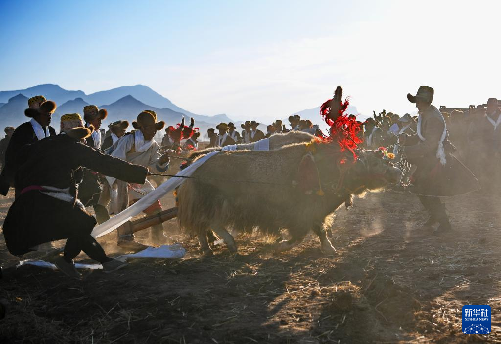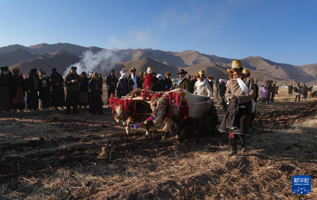這是3月16日拍攝的西藏山南市瓊結(jié)縣加麻鄉(xiāng)加麻村的春耕儀式現(xiàn)場(chǎng)。新華社記者 旦增尼瑪曲珠 攝