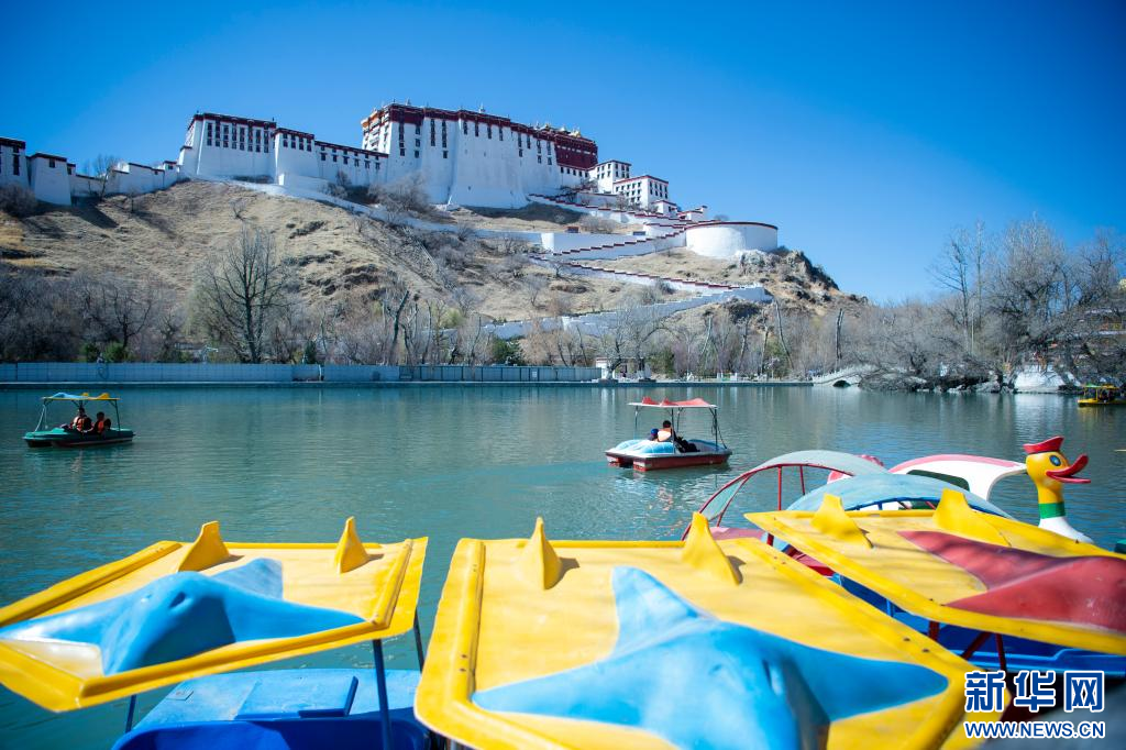 3月15日,位于布達拉宮腳下的宗角祿康公園內(nèi),游客在乘船游玩。新華網(wǎng) 旦增努布 攝