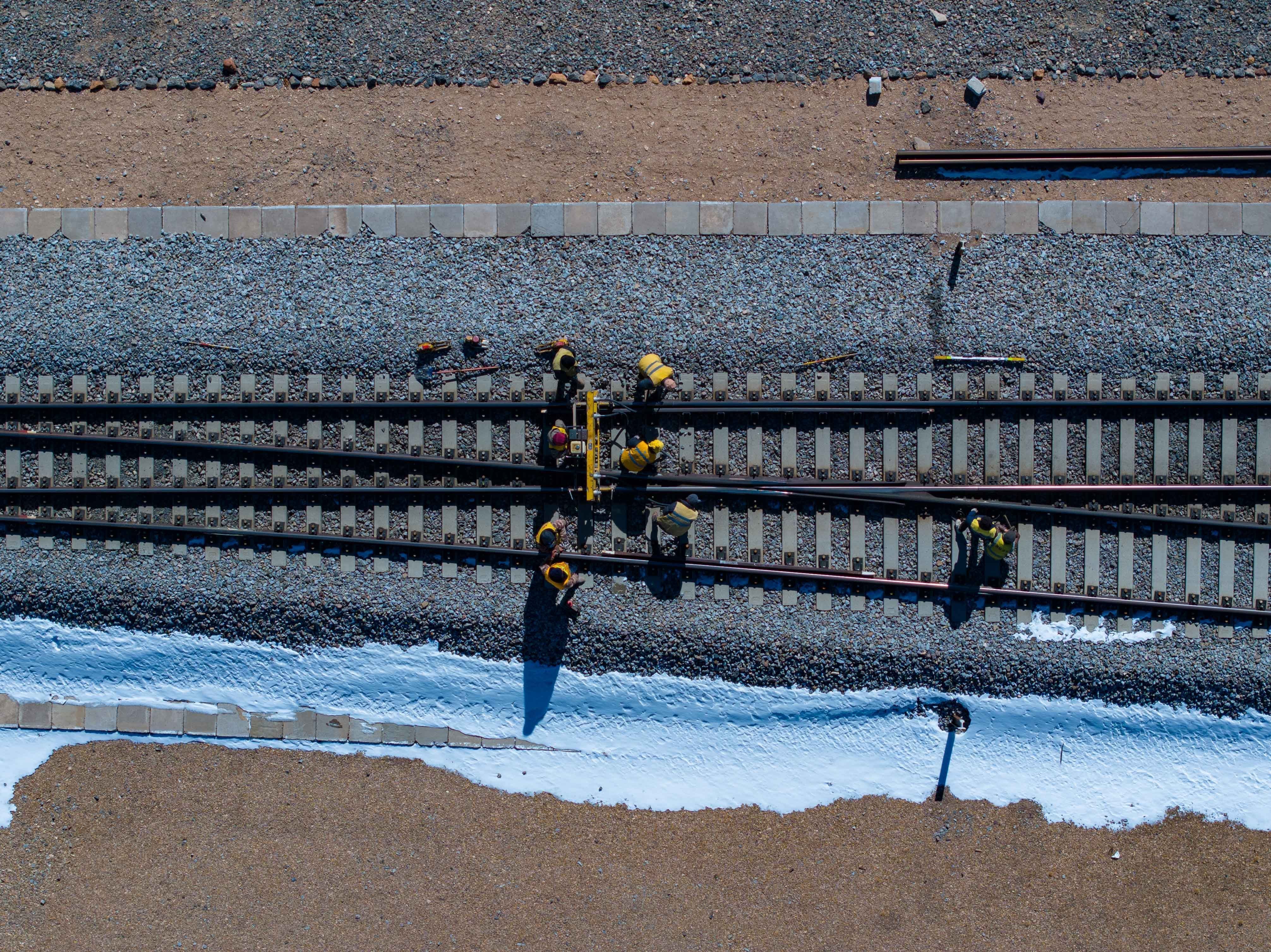 他帶著工人們迅速出動(dòng),抵達(dá)現(xiàn)場(chǎng)時(shí)已經(jīng)是過(guò)了12點(diǎn)。這時(shí)天窗鄰近,他們迅速做好準(zhǔn)備,第一時(shí)間沖到鐵軌上施工。黑夜里,幾個(gè)微小的燈光在茫?;囊吧匣蝿?dòng),隱約區(qū)分出鐵路的軌跡。