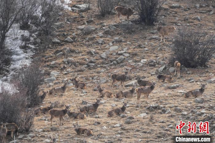 圖為林周縣境內(nèi)的白唇鹿。貢嘎來(lái)松 攝