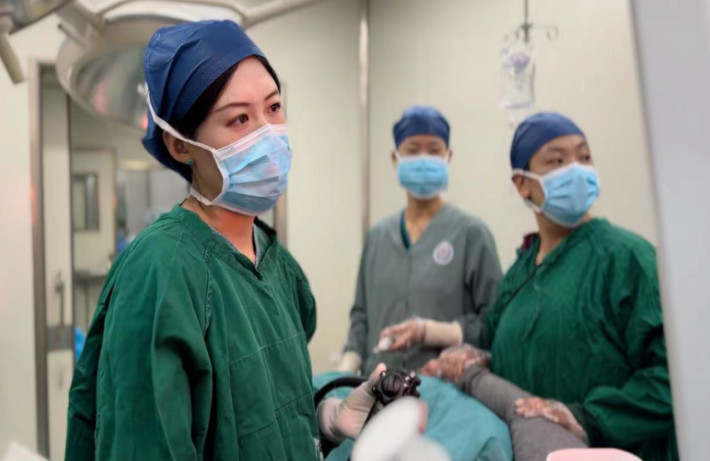 圖為趙曉蕾醫(yī)生為患者進行內鏡下治療