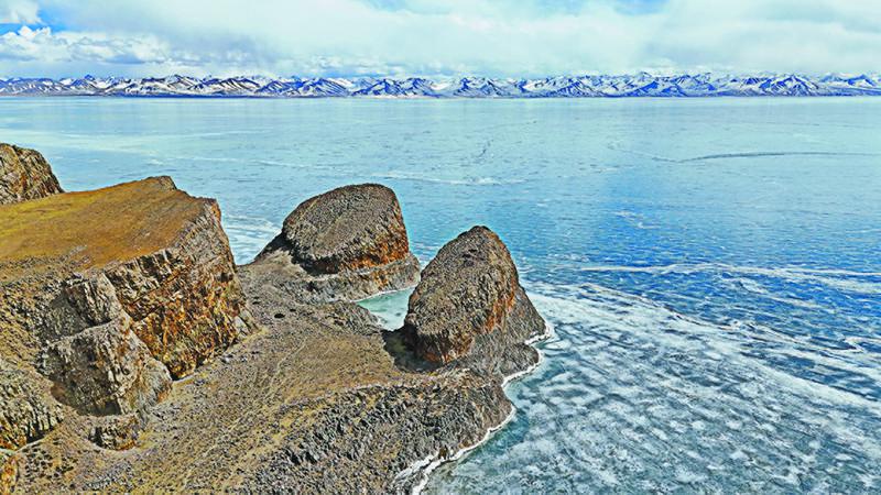 圖為冬季納木錯。(航拍圖)記者 趙書彬 攝