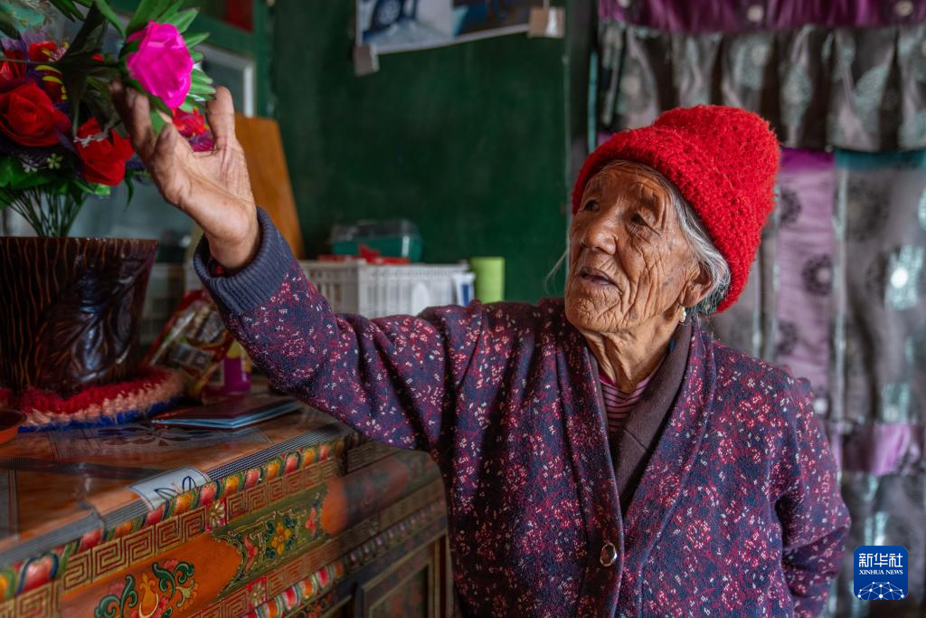 1959年西藏民主改革后,格桑曲珍迎來新生。她和丈夫先后育有4個孩子,如今,格桑曲珍與孫子和孫媳婦一起生活,孫子外出務(wù)工,孫媳婦在家照看老人。他們一家住在一棟二層藏式樓房里,生活得非常幸福。