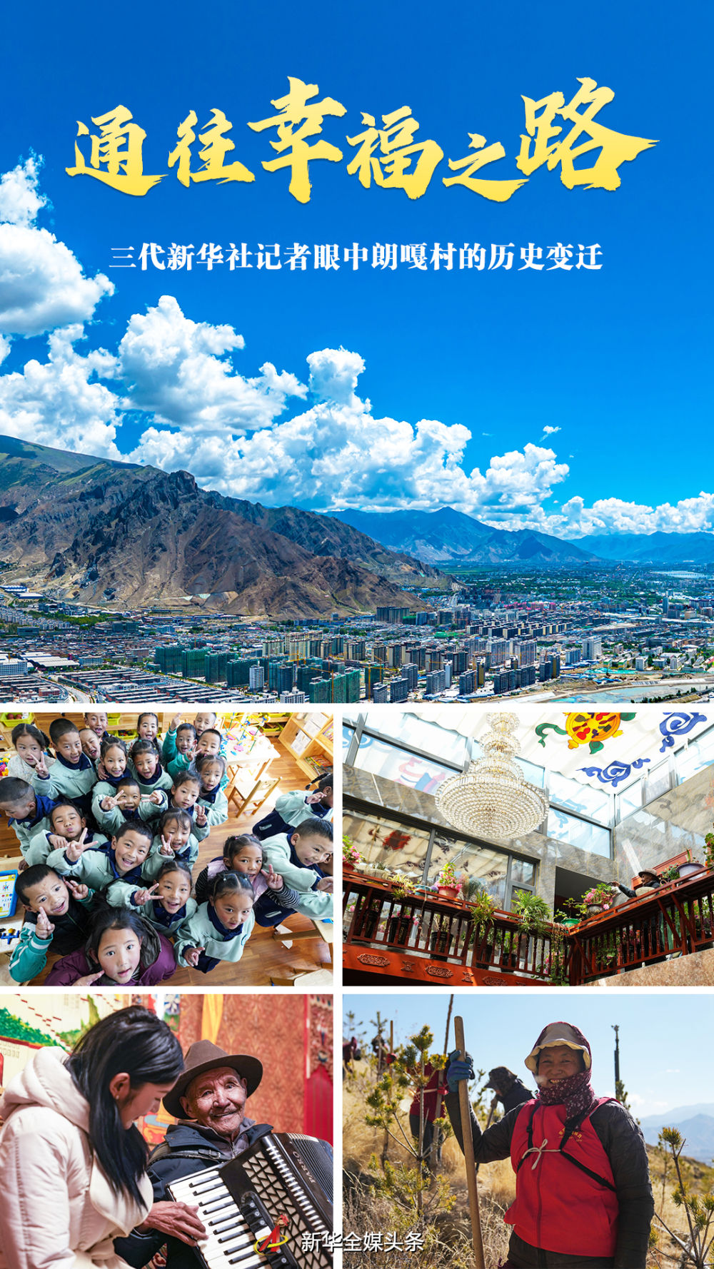 “短短幾十年,跨越上千年”。朗嘎村65年的嬗變,生動(dòng)注釋了西藏民主改革后創(chuàng)造的歷史奇跡,鮮明表達(dá)了雪域高原人民的奮斗心聲——通往幸福之路。