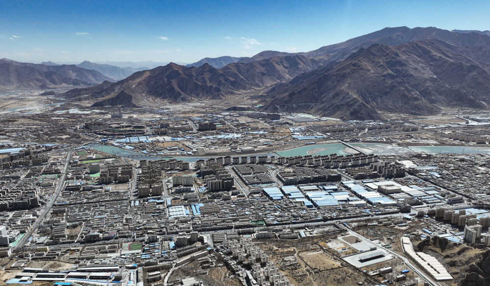 拉薩市堆龍德慶區(qū)嘎東社區(qū)(2024年3月14日攝,無(wú)人機(jī)照片)。新華社記者 晉美多吉 攝