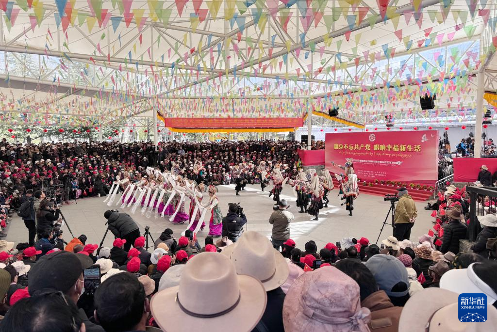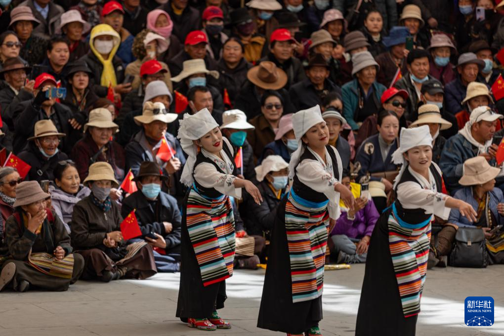 3月28日,群眾在拉薩市宗角祿康公園內(nèi)觀看文藝演出,慶祝西藏百萬農(nóng)奴解放65周年。新華社記者 丁汀 攝