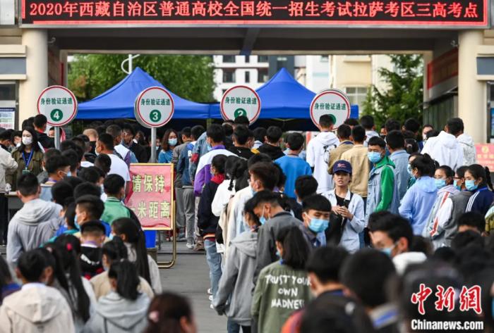 2020年7月7日,拉薩三高考點(diǎn)外,考生有序排隊(duì)進(jìn)入考場(chǎng)。何蓬磊 攝