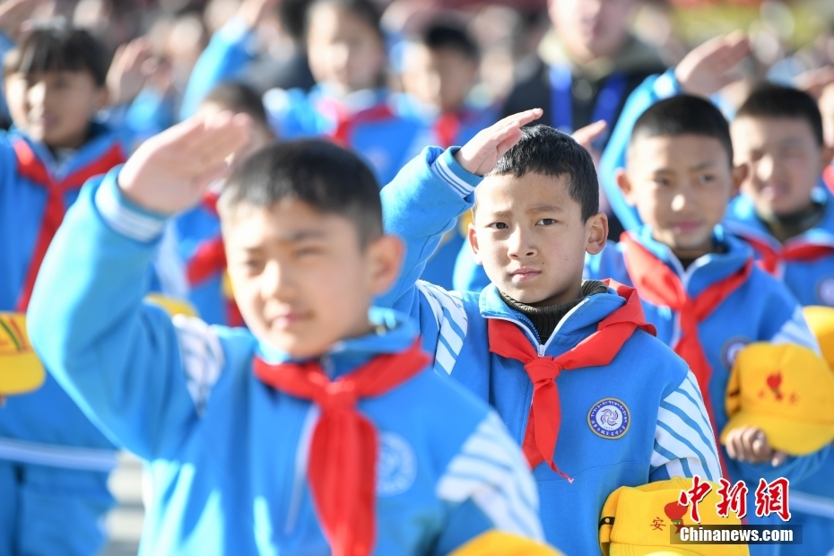 3月28日,西藏各族各界人士聚集在拉薩布達(dá)拉宮廣場(chǎng),升國(guó)旗、唱國(guó)歌,參加西藏百萬(wàn)農(nóng)奴解放65周年紀(jì)念活動(dòng)。圖為升國(guó)旗儀上的學(xué)生代表。中新社記者 貢嘎來(lái)松 攝