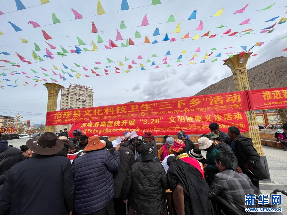 這是洛隆縣文化科技衛(wèi)生“三下鄉(xiāng)”活動現(xiàn)場(3月28日攝)。新華社發(fā)