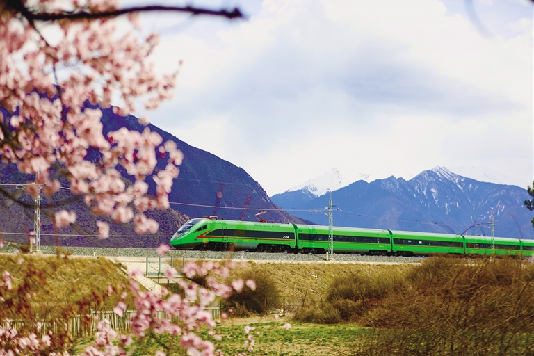 自2021年拉林鐵路開通以來,“搭乘復(fù)興號去看桃花”已成為更多游客的選擇。作為連接“日光城”拉薩和“雪域江南”林芝的“新天路”,拉林鐵路串起了西藏東南地區(qū)的“精華”風(fēng)景,乘坐拉林鐵路列車,不僅能體驗到世界最高海拔運行的動車速度,還可以透過車窗盡情欣賞雅魯藏布江兩岸壯觀的桃花林,飽覽雪域高原的壯麗美景。