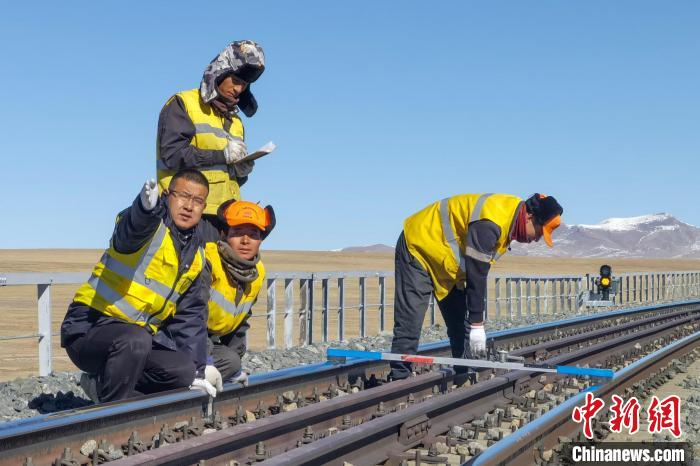 圖為西藏工匠高錢勝(左一)和團(tuán)隊(duì)在青藏鐵路凍土區(qū)段進(jìn)行路基病害整治和檢查。受訪者供圖