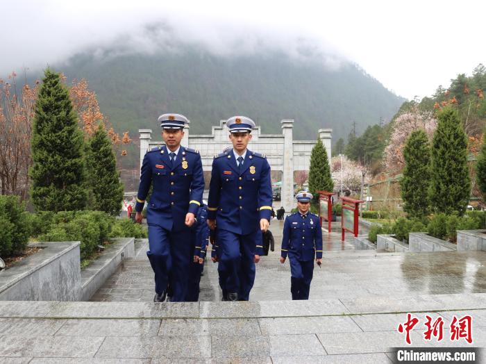 在察隅縣英雄坡紀念園革命烈士紀念碑前,消防救援人員面對鮮紅的黨旗莊嚴宣誓。隨后,大家來到烈士陵園,追憶先烈走過的光輝戰(zhàn)斗歷程,緬懷他們的豐功偉績。懷著對先烈的崇高敬意和沉痛哀思,隊員們?yōu)榱沂磕贡?、擦拭、脫帽默哀?/p>