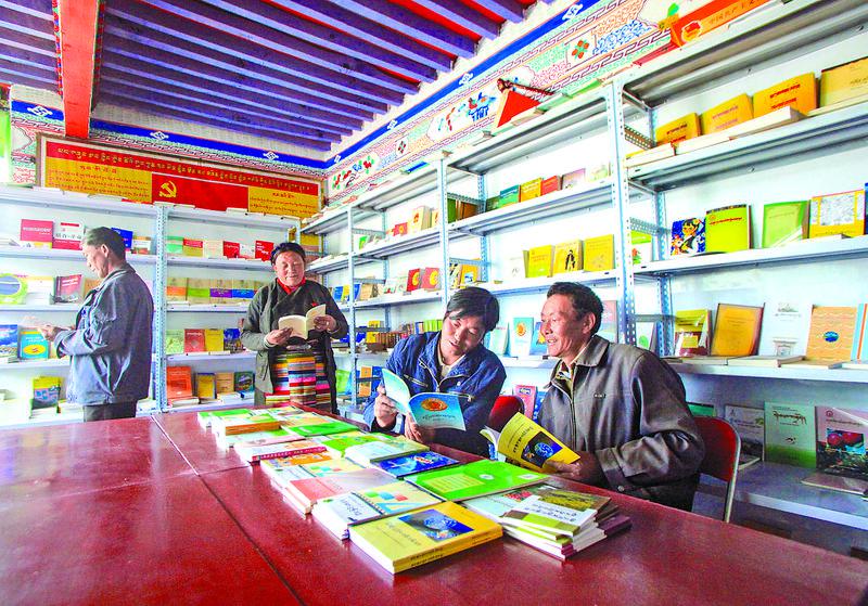 圖為山南市浪卡子縣卡熱鄉(xiāng)群眾在農家書屋閱讀書籍。記者 格桑吉美 攝