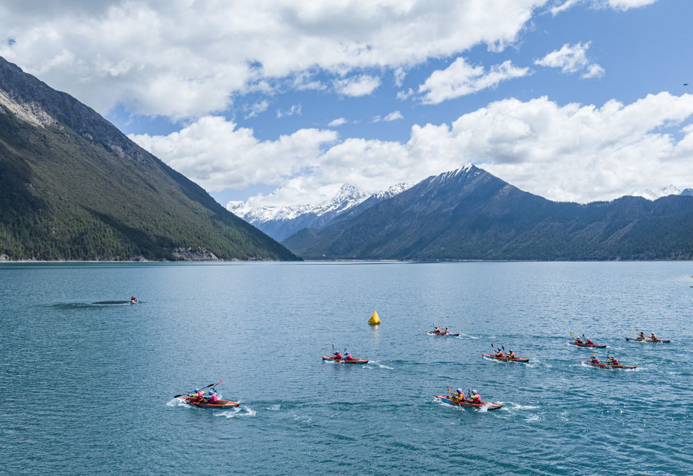 在西藏工布江達(dá)縣巴松措國家森林公園激情開“劃”