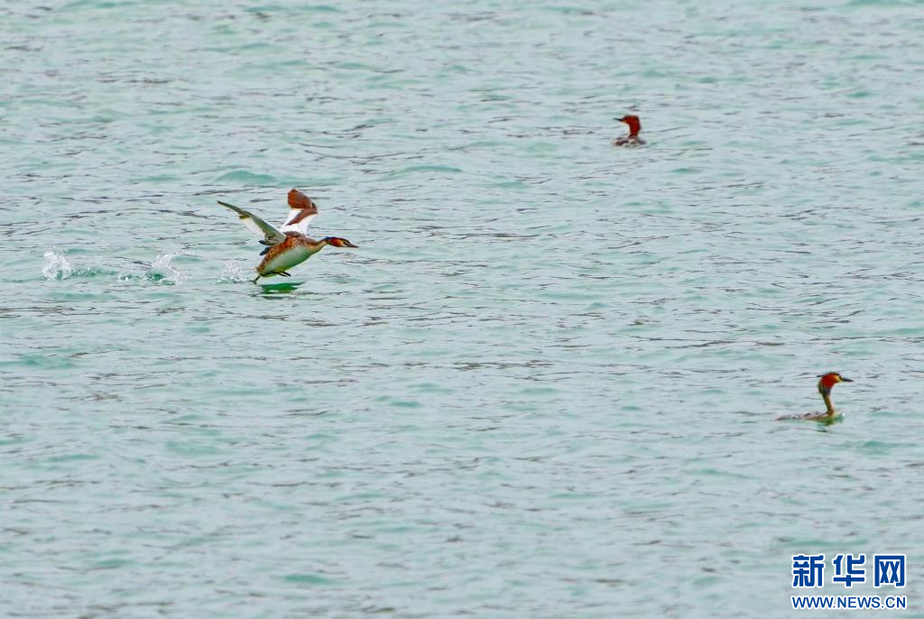 虎頭山水庫(kù)里的赤麻鴨(4月24日攝)。新華社記者 張汝鋒 攝