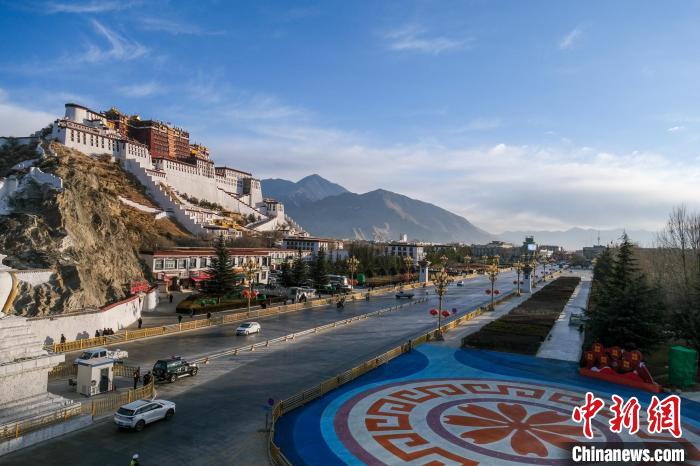 資料圖為2024年1月1日,車輛途經布達拉宮。江飛波 攝
