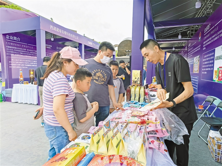 “牦牛肉干、青稞餅干等西藏特產(chǎn)都是健康綠色有機(jī)食品,應(yīng)該讓更多的人了解。”從湖北來西安旅游的雷超現(xiàn)場(chǎng)購(gòu)買了一聽青稞啤酒,打開品嘗后,他豎起了大拇指。從未踏足西藏的他,在西安品嘗到了西藏“味道”。