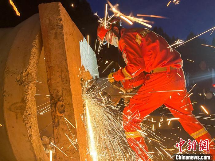 地震救援競賽現(xiàn)場,消防員正在進行破拆。姚天銳 攝