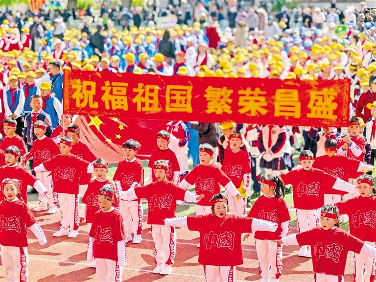 拉薩市第一小學(xué)學(xué)生在運(yùn)動會上表演節(jié)目。朱穎 攝