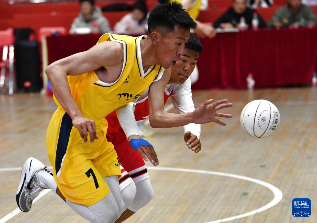 5月14日,山南隊(duì)江濤(左一)在比賽中得分。新華社記者 晉美多吉 攝