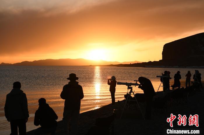 體驗結(jié)束后,邀請嘉賓就座開始觀測星空,由西藏天文歷算有關(guān)專家簡要為游客講解天文歷算及星空觀象相關(guān)知識?,F(xiàn)場擺放10臺星空觀測設(shè)備,供現(xiàn)場游客自行觀察納木錯的星空。