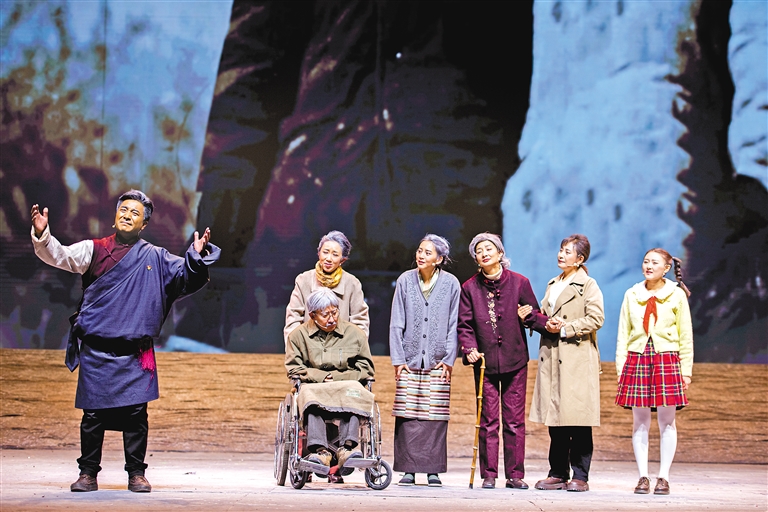 今年3月底,由西藏自治區(qū)文旅廳主辦的2024年格?;ㄑ莩黾镜谝患疚乃嚮顒印o念西藏百萬農奴解放65周年文藝演出啟動,話劇《老西藏》作為開場劇在西藏大劇院連續(xù)演出3天。