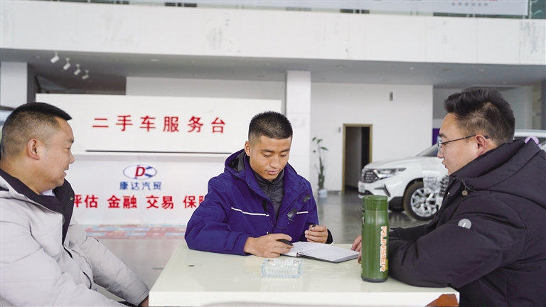 記者在拉薩市堆龍德慶區(qū)康達(dá)二手車交易服務(wù)中心看到,來咨詢購買汽車的顧客比較多。銷售顧問卓么旦主正在向顧客王先生介紹一輛二手汽車的補(bǔ)貼政策以及車輛售后情況?!拔蚁敫鶕?jù)自己的實(shí)際情況,入手一輛性價比較高的二手車?!蓖跸壬f。