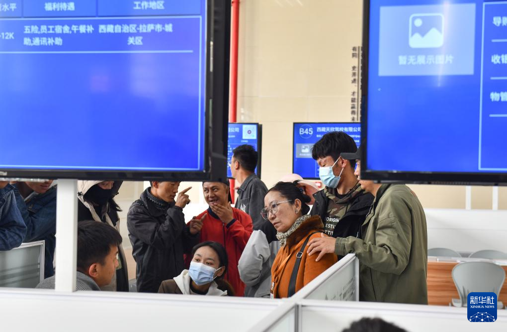 5月24日,求職者在招聘會現(xiàn)場查看崗位信息。新華社記者 晉美多吉 攝