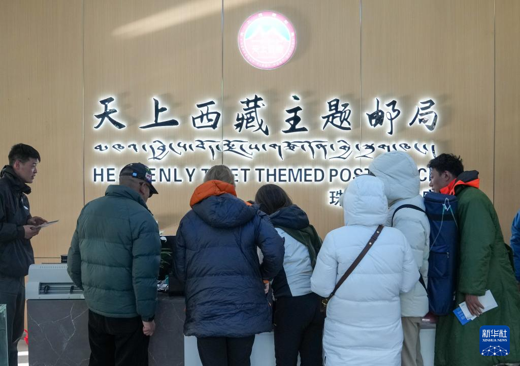 游客在位于珠峰游客大本營的郵局排隊購買明信片(5月24日攝)。