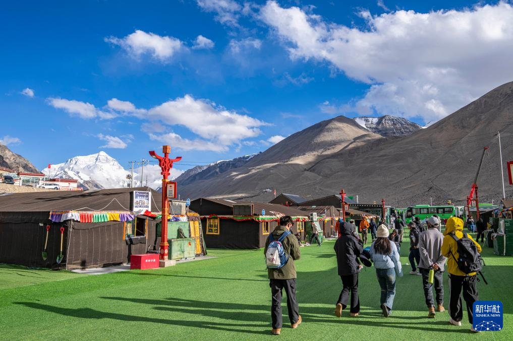 游客行走在珠峰游客大本營(5月24日攝)。